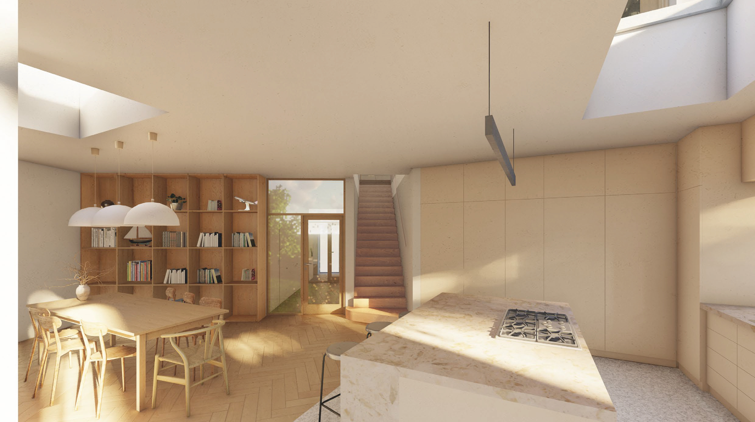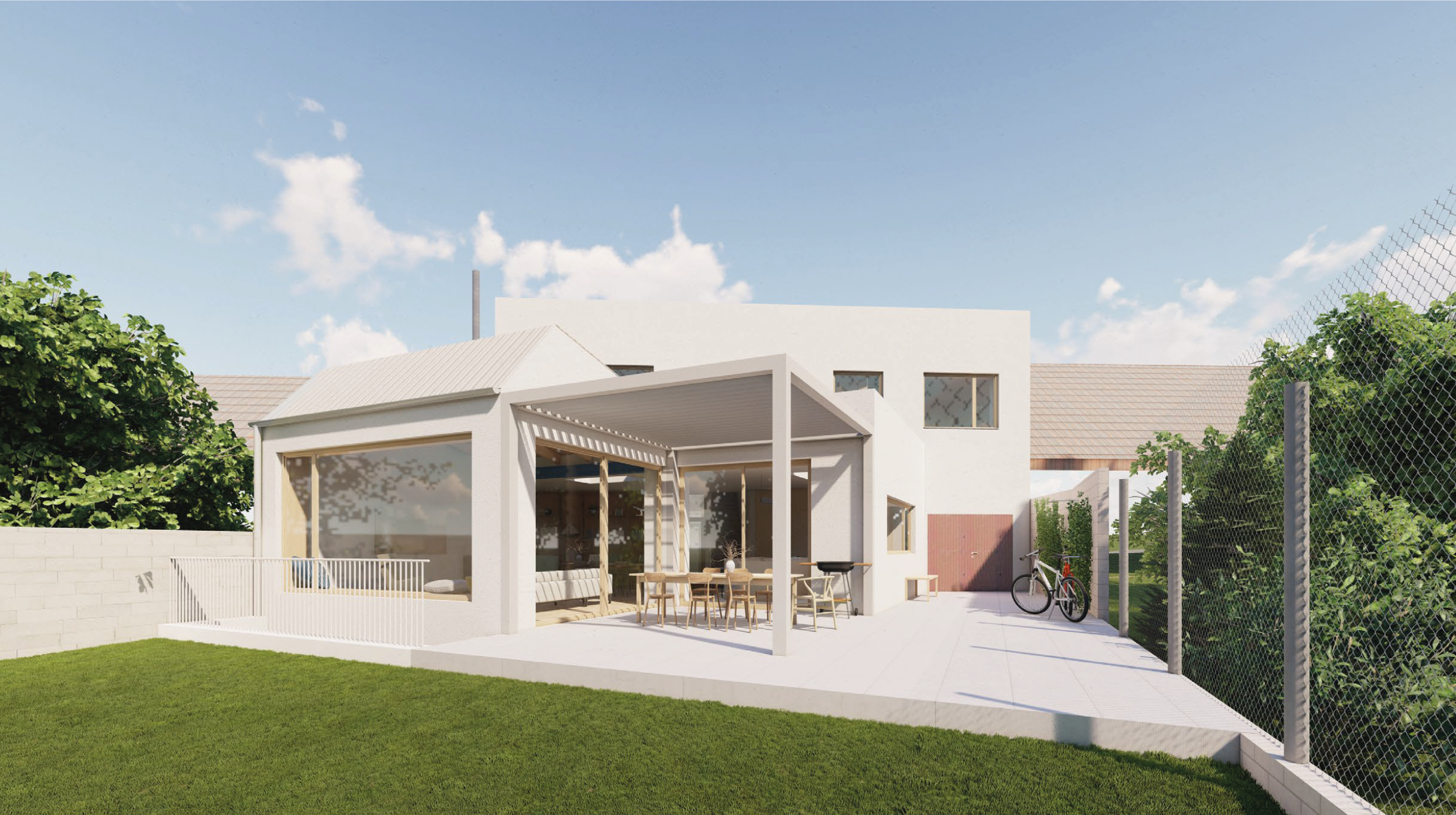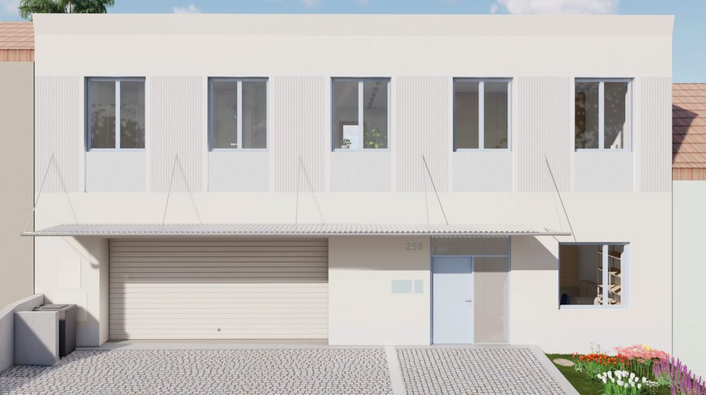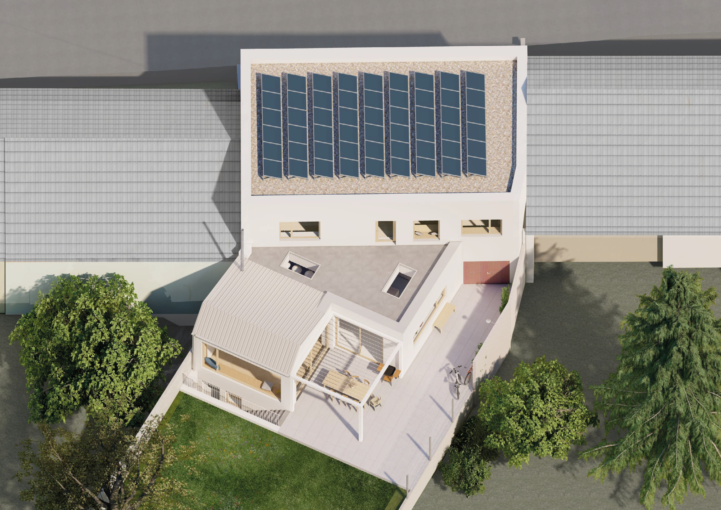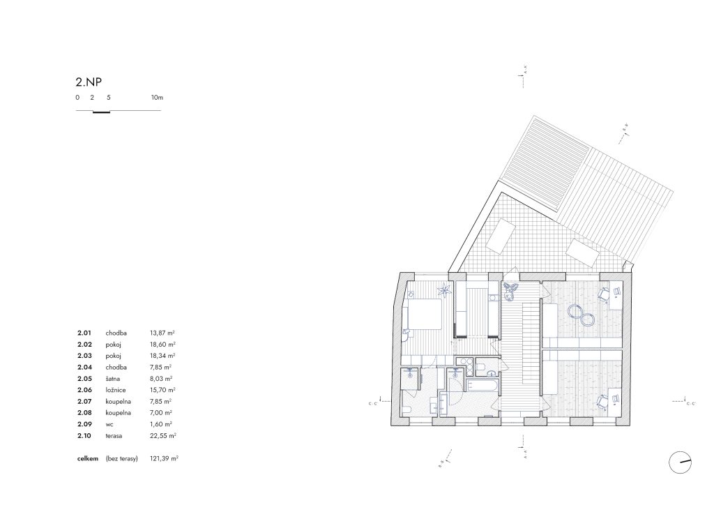 Vracíme se z procházky Vinohradskou. V uších ještě doznívají tóny cimbálu, ale my už vidíme náš dům. Vyplnil místo v řadě, které bylo dlouho volné, ale teď vypadá, jako by tam stál odjakživa. Z ulice je vidět hlavně pevný řád oken prvního patra, který zjemňuje zvlněná omítka mezi nimi. Pomněnková modř jejich
